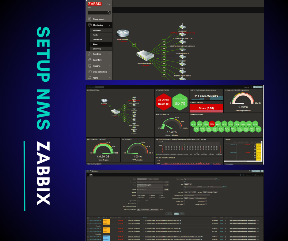 Melakukan setup dan instalasi Zabbix sebagai Network Monitoring System (NMS) untuk mendukung monitoring infrastruktur jaringan, termasuk switch dan access point, di lingkungan RS Vertikal Surabaya