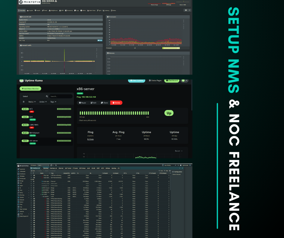 Melakukan instalasi dan konfigurasi NMS serta berperan sebagai Network Operation Center (NOC) freelance, mendukung analisa dan troubleshooting jaringan secara remote di Bumdes Dinding Ari Jaya, Padakembang